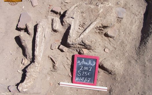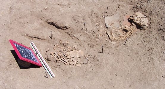 كما عثر على جماجم إنسانية مفصولة عن الجسد، تحت أرضيات البيوت، وهو ما يدل على وجود عبادة تقديس الأسلاف، وقد دفنت أحياناً بعناية ضمن حفرة دائرية أحيطت بالكسر الفخارية، أو وضع حولها بعض الحجارة. كما عثر على جماجم حيوانية مدفونة وحولها كسر فخارية، ورافق قرن ماعز قبر أحد الأطفال. وقد وجدت في عدد من القبور بعض اللقى منها النصال الصوانية التي وضعت أحياناً على الرأس، وبعض الفخاريات والكرات الطينية والخرز الطينية والحجارة المصنعة على شكل الهلال وتحمل بعض الرسوم.