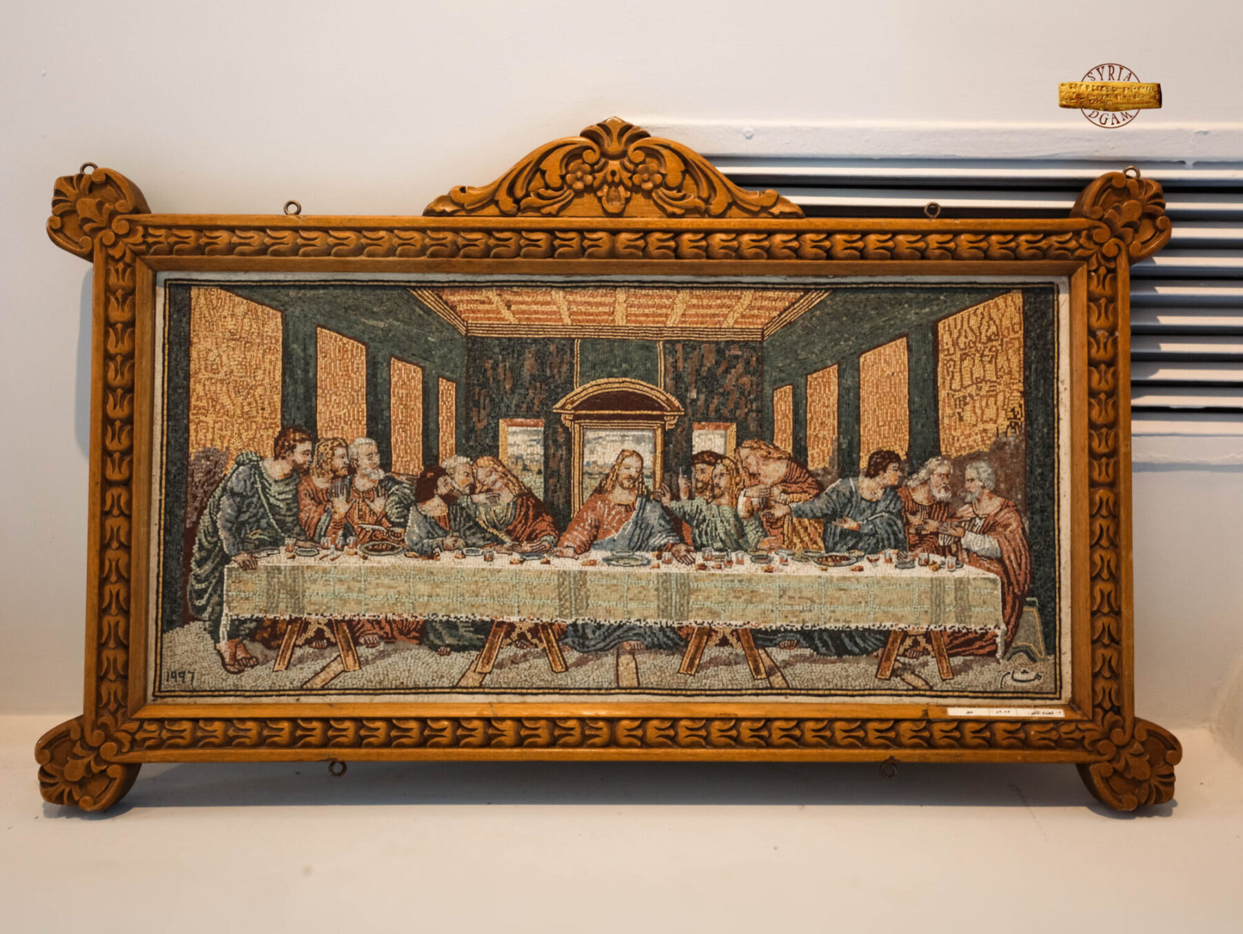 في إحدى زوايا المعرض، تستقبل الزائر لوحة “الروحانية في التفاصيل”، التي تُجسّد السيدة العذراء والطفل يسوع بتدرجات ترابية وهالات ذهبية تُضفي على المكان سكينة تشبه صلوات الحجر. وفي عملٍ آخر بعنوان “الكتاب في قلب المدينة”، تتحوّل فسيفساء الحياة اليومية إلى مشهدٍ حضري أمام مكتبة شعبية، حيث يُصوّر الفنان تفاعل الناس مع الثقافة بوصفها نبض الهوية وذاكرة المكان.